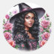 Les autocollants sont décorés d'aquarelles d'une sorcière à la peau brune portant une tenue de sorcière noire et rose avec un casquette pointu, entourée de roses roses ! Une esthétique de sorcière girly bubblegum mettant en vedette une belle fille noire.