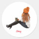 Sticker Rond Fille Orange Automne Automne Automne Personnalisé