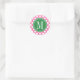 Sticker Rond Fille rose et vert foncé Gros Pois Monogramme
