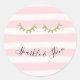 Sticker Rond Fille rose rayures Parties scintillant or Eyelashe
