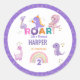 Sticker Rond Filles mignonnes Roar Dinosaur fête d'anniversaire