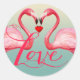 Sticker Rond Flamant rose Amour Mariage Faveur | bleu menthe
