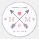 Sticker Rond Flèche de coeur rustique Mariage Favoriser Monogra