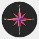 Autocollant graphique de carte géométrique coloré en orange, rouge et violet.