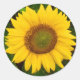 Sticker Rond Fleur jaune tournesol simple Feuille vert
