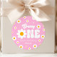 C'est un Pink Retro Daisy Flower Super Un 1er Anniversaire de fête Favor Stickers.