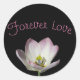 Un élégant autocollant en noir avec du texte rose pâle et l'image d'une fleur rose unique fleurissant. Trouver des produits similaires dans la collection Floral In Love mariage.