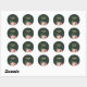 Sticker Rond Fleur rose et feuilles sur vert foncé