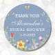 Admirez le charme fantaisiste d'une affaire boho-chic avec cette douche nuptiale personnalisée merci autocollant. Contre un arrière - plan bleu poussiéreux et rêveur, des fleurs sauvages d'été vibrants dansent avec une élégance féminine, évoquant l'esprit d'un jardin de campagne baisé au soleil. Des accents de verdure douce dégagent de la grâce naturelle, tandis que les papillons clignotants apportent une touche de fantaisie. Parfait pour décorer des faveurs et des cadeaux, il sert de gage d'appréciation, exprimant sa gratitude à vos amis et à votre famille pour avoir partagé votre fête de la mariée bohème ou pique-nique.