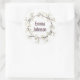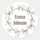 Fleurs blanches daineuses et une couronne de branches avec nom sur un arrière - plan blanc. La couleur Arrière - plan peut être modifiée. Le nom est modifiable.