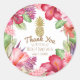 Sticker Rond Fleurs exotiques tropicales et ananas doré élégant