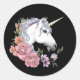 Sticker Rond Fleurs Unicorne Blanches Rose noir