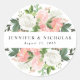 Scellez vos enveloppes d'invitation ou vos faveurs avec nos stickers de mariage personnalisés Blush Spring Floral. Les autocollants personnalisés portent vos noms encadrés par une bordure de roses d'aquarelle et de verdure dans les tons rose, blanc et vert. Conçu pour coordonner avec notre collection de mariages florale de printemps de Blush.