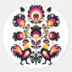 Fleurs folkloriques et composition de coqs noirs, roses et jaunes de Lowicz (région de Pologne). Autocollant de folklore et joint d'enveloppe. Nice comme cadeau pour quelqu'un qui aime l'art populaire et les choses uniques