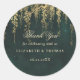 Une aquarelle fantaisie illustrant le feuillage luxuriant et les vignes superposées numériquement d'or (pas de vrai papier d'aluminium) sur le vert émeraude, étincelante de lumières féeriques et de poussière magique, orne cette élégante, simple, classe et moderne faveur de mariage Merci sticker avec un thème de forêt enchantée. Luxueux mais simple, classique mais chic, moderne mais intemporel. Un sticker mariage élégant et moderne pour un mariage de conte de fées. Parfait pour les mariées qui aiment le cadre de la forêt de contes de fées, la forêt de fées ou le thème du jardin de fées et vert émeraude.