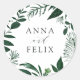 Scellez vos enveloppes d'invitation ou faveurs avec ces élégants autocollants de mariage botanique d'hiver avec vos noms encadrés par un feuillage d'aquarelle luxuriante dans des tons sombres et riches de vert chasseur. Coordonnée avec notre collection de mariages de forêt sauvage.