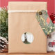 Un autocollant de mariage de automne extérieur avec l'illustration d'un arbre dans la forêt. L'arbre a des feuilles d'automne, des racines exposées, et un tronc enveloppé d'une bannière qui peut être customisé avec les noms de mariée et mariée.