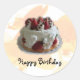 Sticker Rond fraise d'anniversaire, gâteau au chocolat