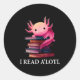 Sticker Rond Funny Axolotl Book Lover Librarian Reading Library