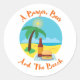 Sticker Rond Funny Beach Summer - Un Burger, Bière Et Plage