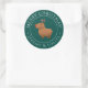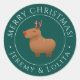 Envoyez ces drôles de chevaliers de Noël de rennes de capybara avec un cadeau de vacances à votre ami, membre de votre famille ou à un proche. L'autocollant vert présente une illustration capybara dans le centre avec "Joyeux Noël et nom" personnalisé, parfait pour les amateurs de capybara. L'illustration capybara est une oeuvre d'art originale dessinée à la main par artbybiyan.