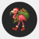 Sticker Rond Funny Christmas Flamingo Santa Holiday Design