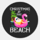 Sticker Rond Funny Flamingo Float Santa Claus Christmas At The