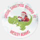 Sticker Rond Funny Père Noël chevauchant un dinosaure livraison