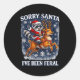 Sticker Rond Funny Raccoon Riding Reindeer Sorry Santa Christma