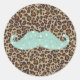 Sticker Rond Funny Teal Green Bling Mustache And Animal Print