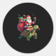 Sticker Rond Funny Turtle Christmas Santa Riding Sea Turtle Xma