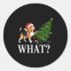 Sticker Rond Funny Xmas Beagle Pushing Christmas Tree Over Dog