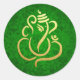 Sticker Rond Ganesh de fête en or | Dieu indien damassé vert