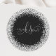 Sticker Rond Glam Black Silver Parties scintillant Nom du monog