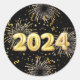 Festive 2023 Soirée du Nouvel An or et autocollants noirs avec éclats de feux d'artifice.