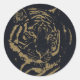 Cette tête de tigre en feuille d'or à la fausse parties scintillant à la main, tendance et élégante, sur un arrière - plan noir, est le choix idéal pour toutes occasions, vêtements de tous les jours ou décors à la maison.