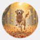 Sticker Rond Golden Retriever En Automne Woods