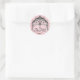 Cet autocollant de Merci d'Halloween a une toile d'araignée de style gothique avec une araignée en noir sur un arrière - plan damassé rose.