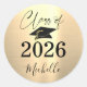 Sticker Rond Graduation Faux Métallic Or Script manuscrit