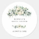 Elegant greenery eucalyptus bridal shower sticker with soft watercolor leaves. Perfect for favors, envelopes, and gift packaging.
