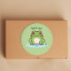 Un autocollant vert avec une illustration d'une grenouille mignonne sur son étang et texte personnalisable ci-dessus! Vous pouvez le customiser avec un message d'anniversaire à ajouter à vos cadeaux pour les enfants ou un SMS de Remerciements à coller à un ballotin!