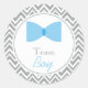 Le chevron gris révèle un autocollant. Le design se compose d'un motif chevron gris et blanc et d'un cercle blanc au milieu avec une cravate arc bleu et le texte "Team Boy".