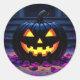 Sticker Rond Halloween Citrouille noir Jack-O-Lantern