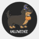 Sticker Rond Halloweenie Funny Saucisse Chien Pun Dark BG