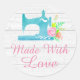 Sticker Rond Handmade With Love Sewing Machine Rustic Wood