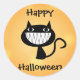 Sticker Rond Happy Halloween mignonette Carton noir Chat orange