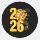 Sticker Rond Happy New Year 2026 Coquette Bow Disco Ball New Ye