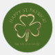 Sticker Rond Happy St. Patrick Green et Gold Shamrock Clover