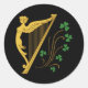 Sticker Rond Harpe d'or St Patrick's Day et Shamrock