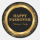 Sticker Rond Hébreu Happy Pâque élégant en noir et or